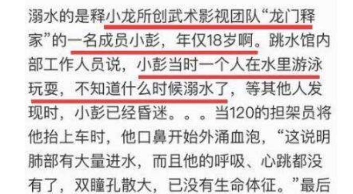 释小龙助理溺水后续