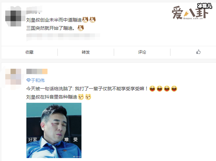 视频里前面还是刘备在慷慨激昂的教训属下,声称“放肆!你在教训我吗?我打了一辈子的仗就不能享受享受吗?”接着下一秒,《一出好戏》的张总抽了一口雪茄,然后跟着动次打次的音乐开始摇晃起来。这个场面也是颇具喜感。